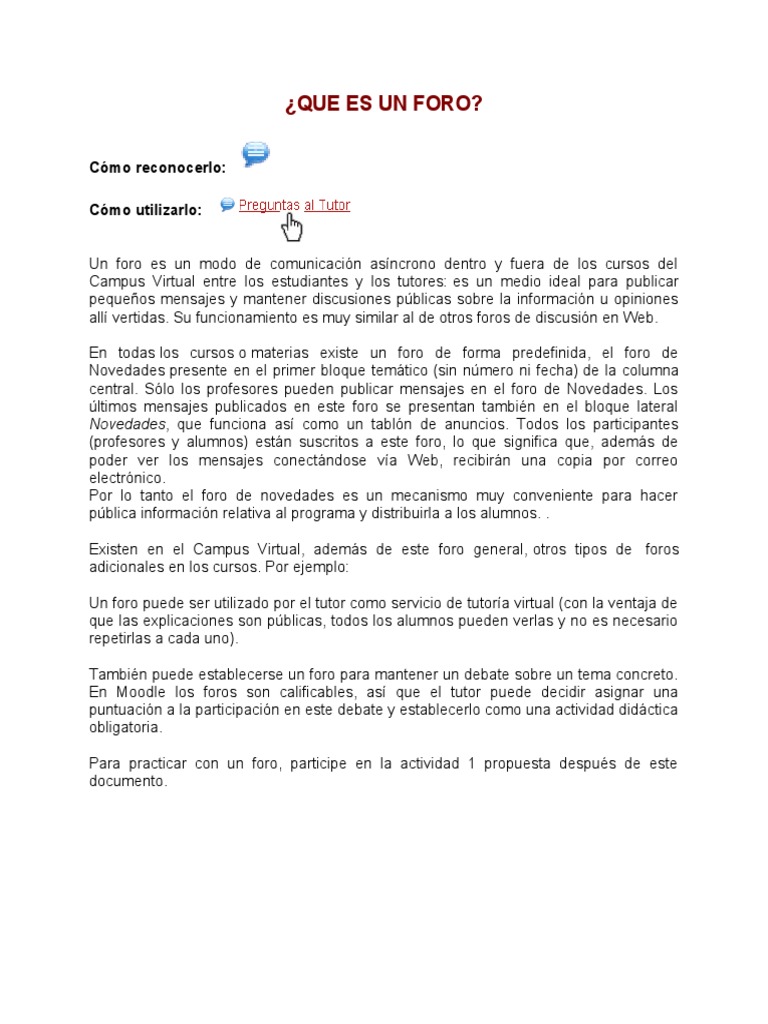 Para practicar con un foro, participe en la actividad 1 propuesta después de este