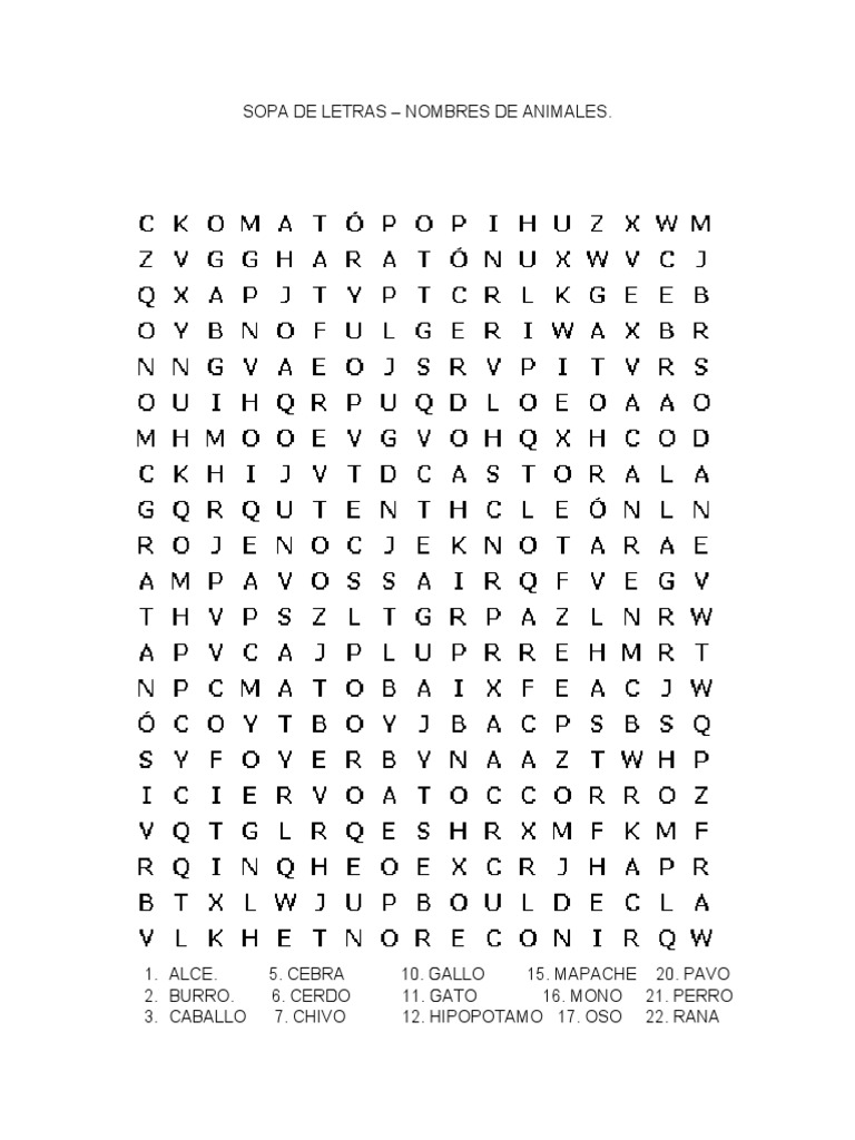 SOPA DE LETRAS – NOMBRES DE ANIMALES.