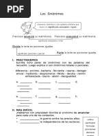 Llamamos sinónimos a dos palabras II.-A continuación se presentan 10 pares de