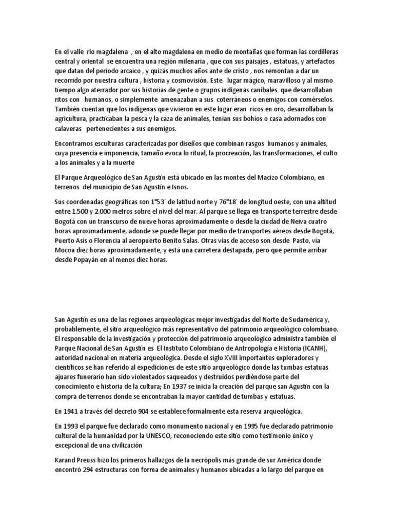 conocimiento e historia de la cultura; En 1937 se inicia la creación del parque san Agustin con la