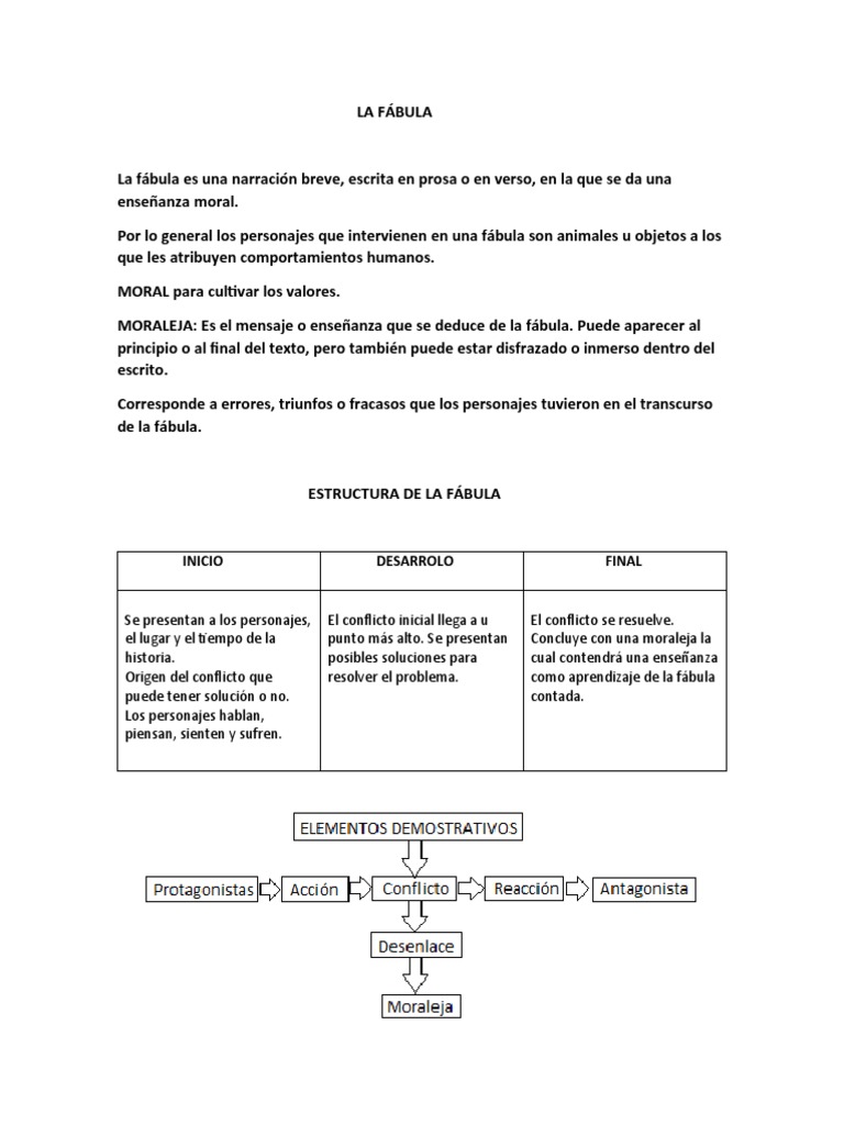 La fábula es una narración breve, escrita en prosa o en verso, en la que se da una