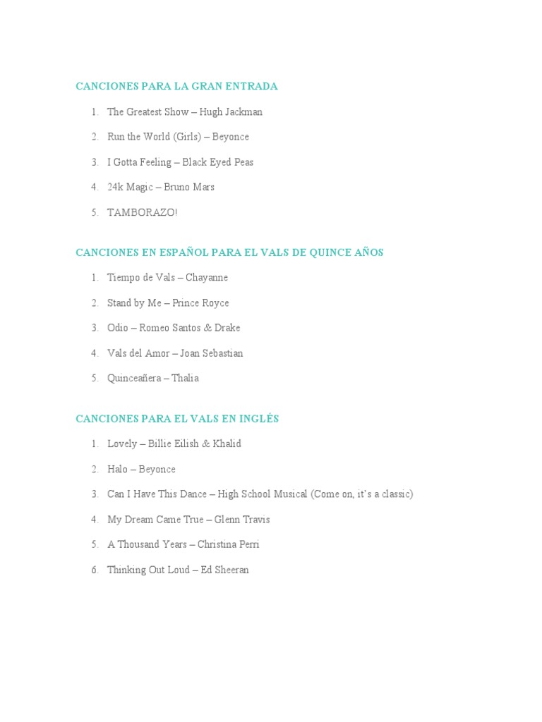 CANCIONES EN ESPAÑOL PARA EL VALS DE QUINCE AÑOS