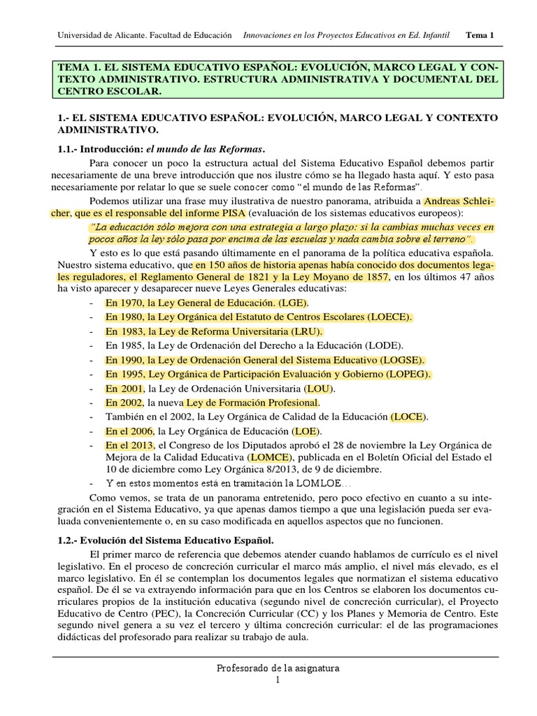 Universidad de Alicante. Facultad de Educación Innovaciones en los Proyectos Educativos en Ed. Infantil Tema 1
