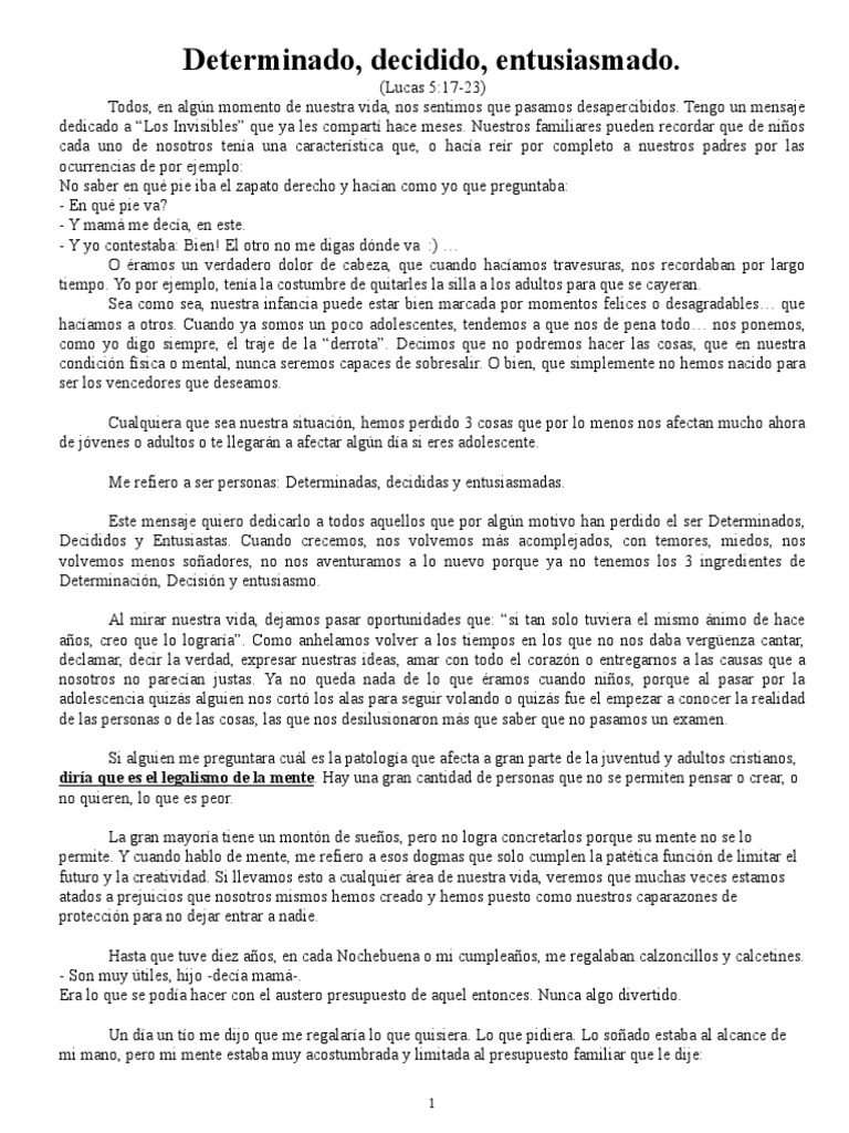 Este mensaje quiero dedicarlo a todos aquellos que por algún motivo han perdido el ser Determinados,
