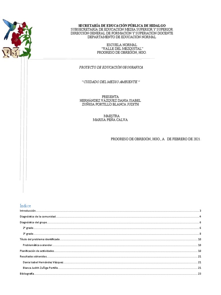 PROYECTO DE EDUCACIÓN GEOGRAFICA