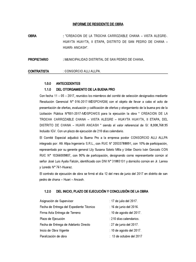 CONTRATISTA : CONSORCIO ALLI ALLPA.