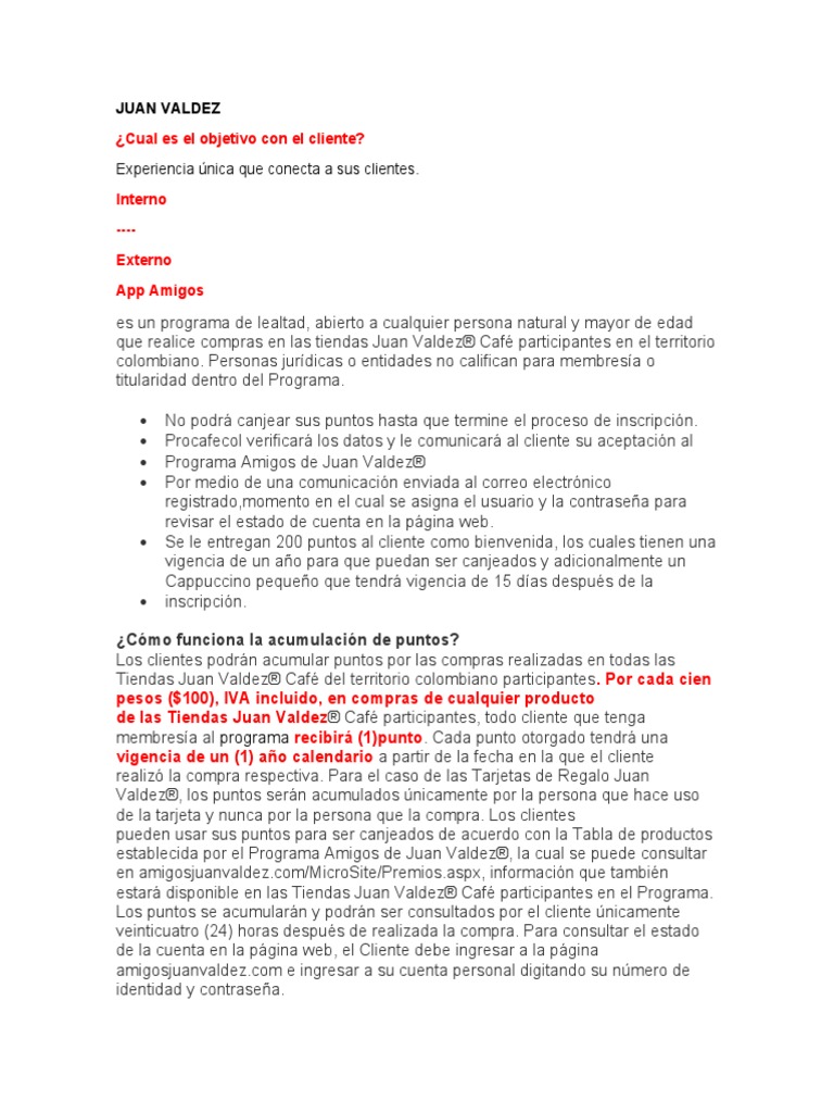 de las Tiendas Juan Valdez® Café participantes, todo cliente que tenga