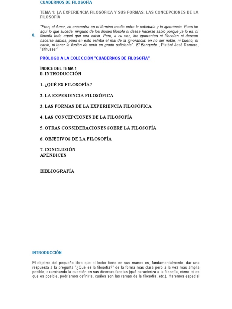 capítulos más amplios de este tema es el dedicado a las "concepciones de la filosofía" (capítulo nº.
