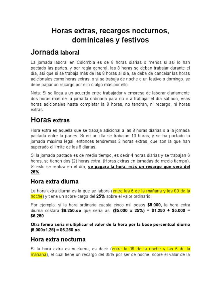 de la hora normal, más el respectivo porcentaje extra. Diurno 25%, Nocturno el