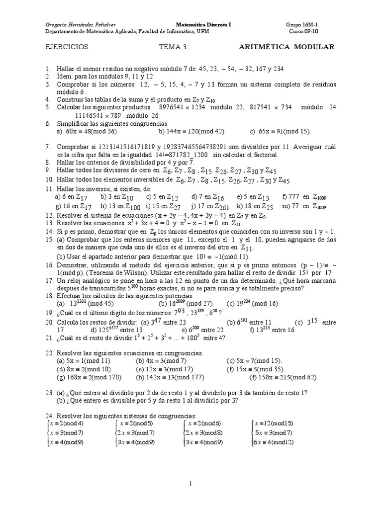 EJERCICIOS TEMA 3 ARITMÉTICA MODULAR