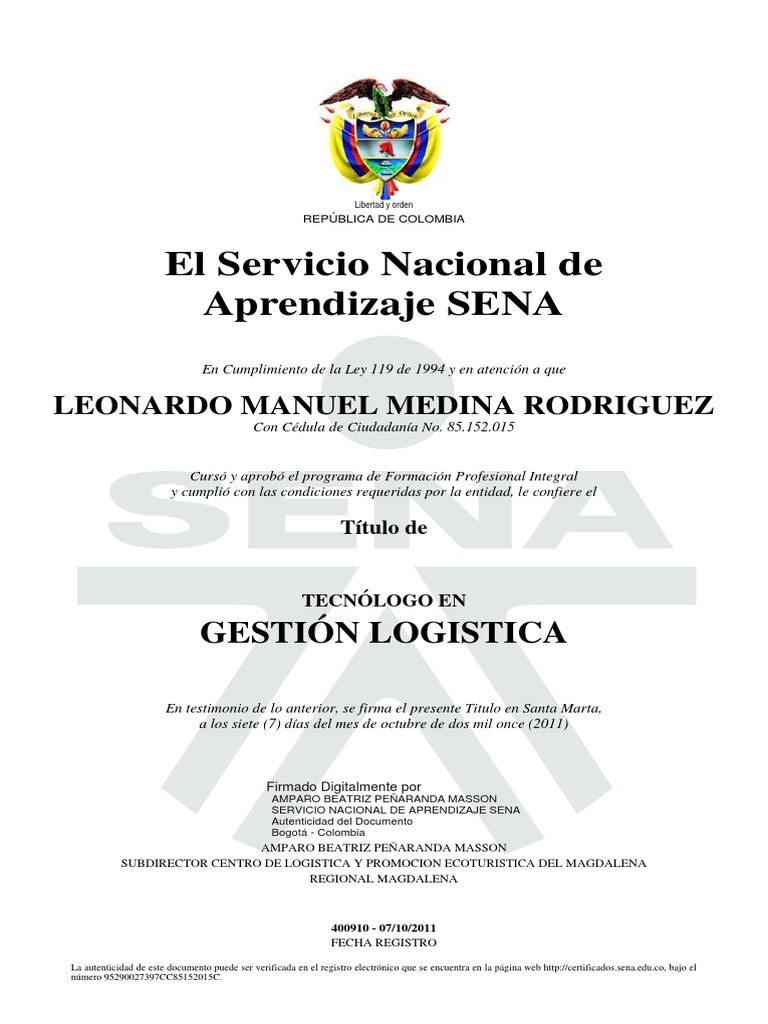 La autenticidad de este documento puede ser verificada en el registro electrónico que se encuentra en la página web http://certificados.sena.edu.co, bajo el