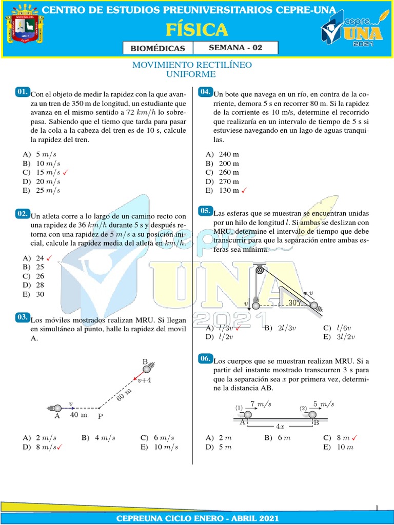01. Con el objeto de medir la rapidez con la que avan- 04. Un bote que navega en un rı́o, en contra de la co-