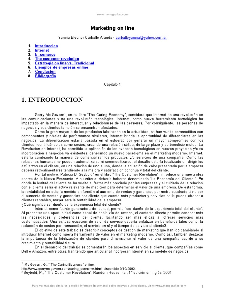 Gerry Mc Govern1, en su libro “The Caring Economy”, considera que Internet es una revolución en
