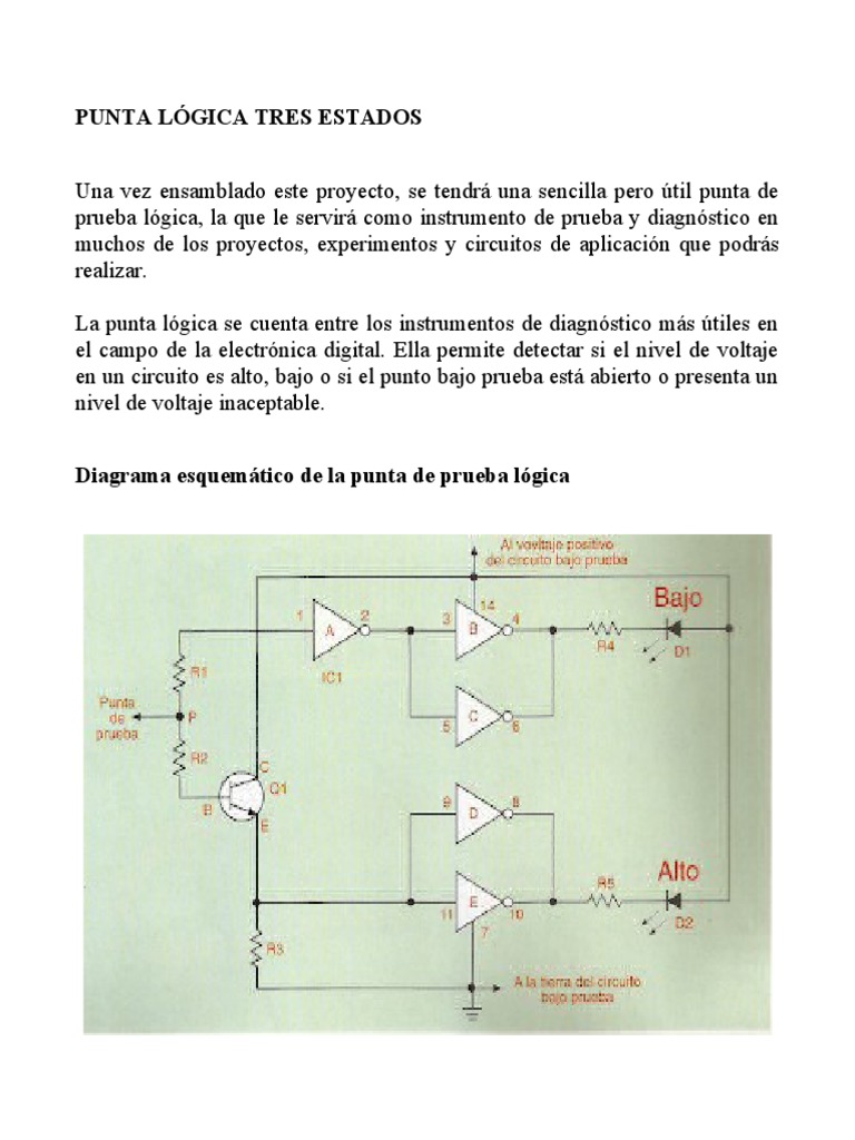 Diagrama esquemático de la punta de prueba lógica