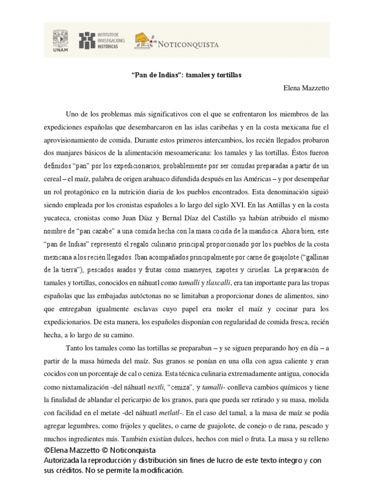 “Pan de Indias”: tamales y tortillas