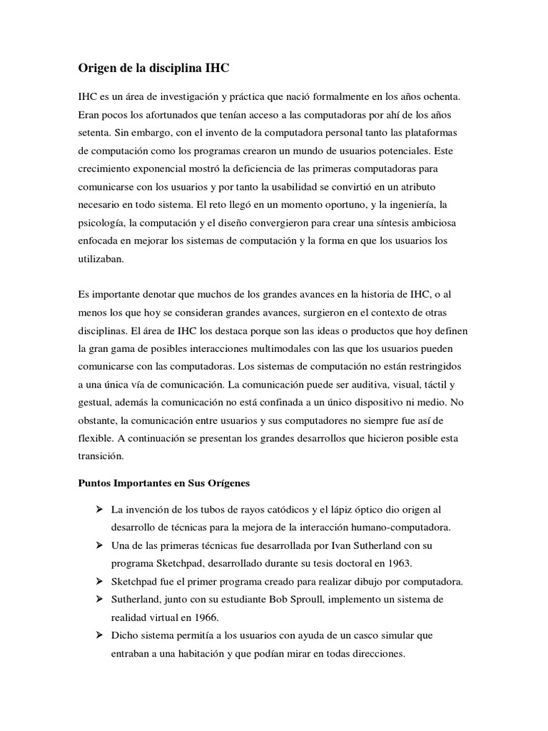 IHC es un área de investigación y práctica que nació formalmente en los años ochenta.