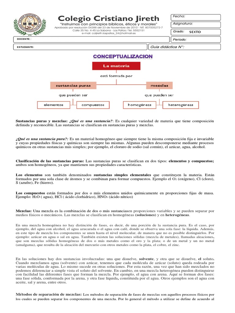 definida y reconocible. Las sustancias se clasifican en sustancias puras y mezclas.