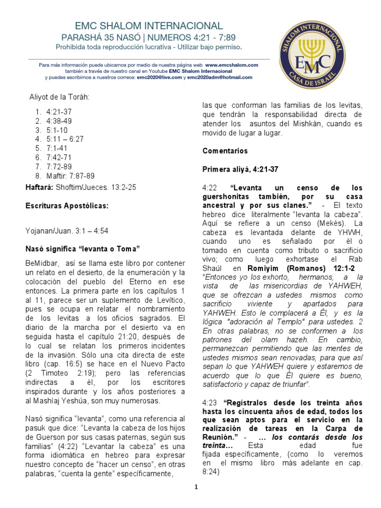 PARASHÁ 35 NASÓ | NUMEROS 4:21 - 7:89