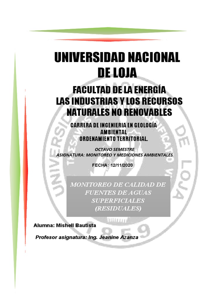 ASIGNATURA: MONITOREO Y MEDICIONES AMBIENTALES