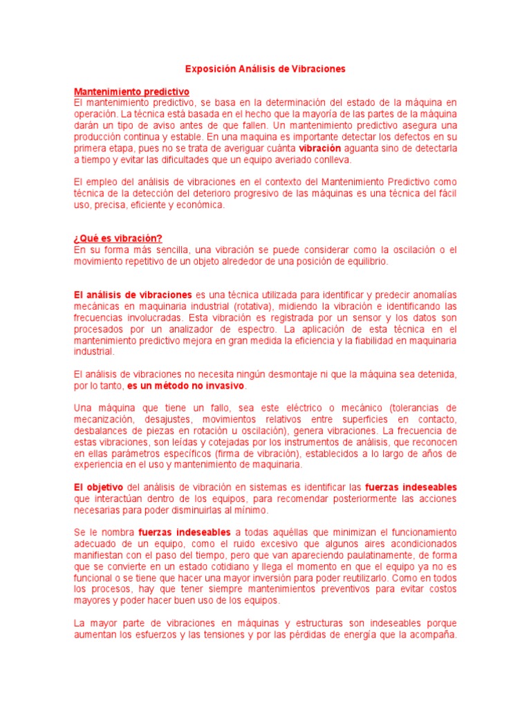 El empleo del análisis de vibraciones en el contexto del Mantenimiento Predictivo como