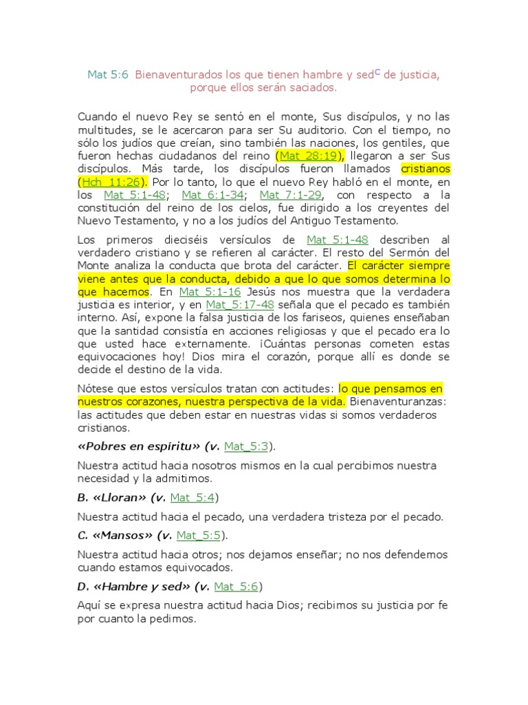 Mat 5:6 Bienaventurados los que tienen hambre y sedc de justicia,