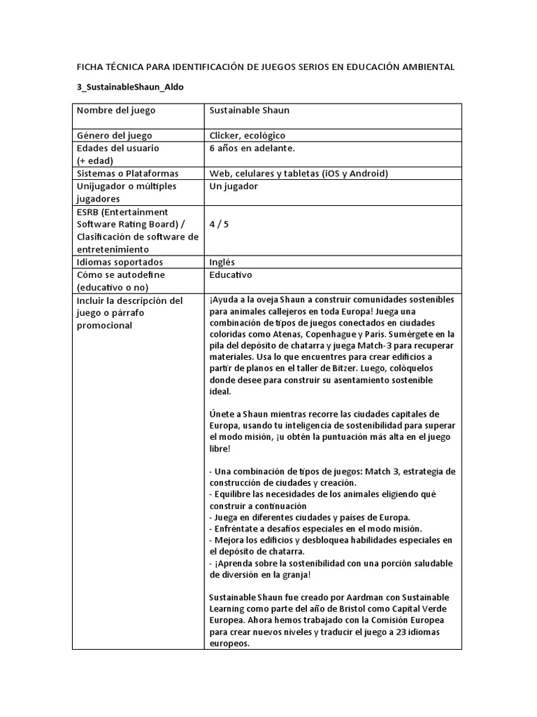 FICHA TÉCNICA PARA IDENTIFICACIÓN DE JUEGOS SERIOS EN EDUCACIÓN AMBIENTAL