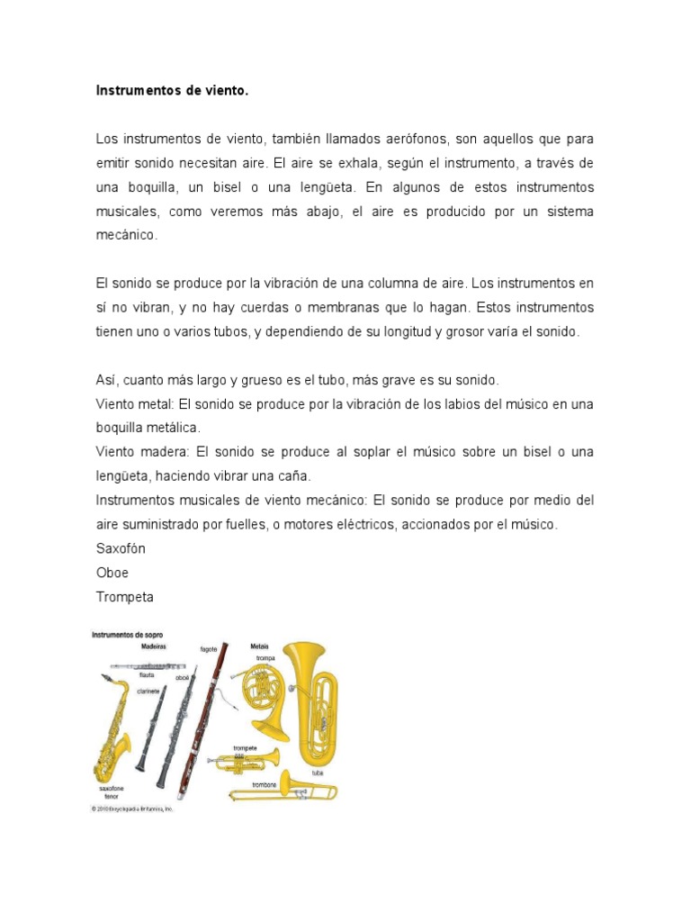 Los instrumentos de viento, también llamados aerófonos, son aquellos que para