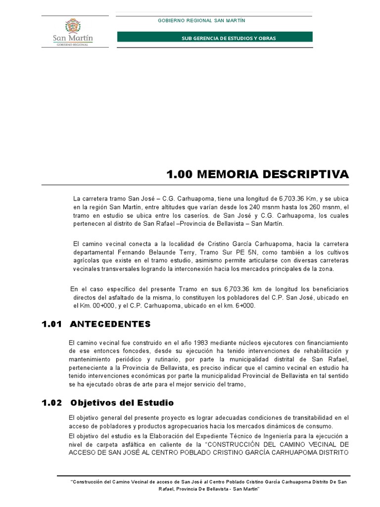 tramo en estudio se ubica entre los caseríos. de San José y C.G. Carhuapoma, los cuales