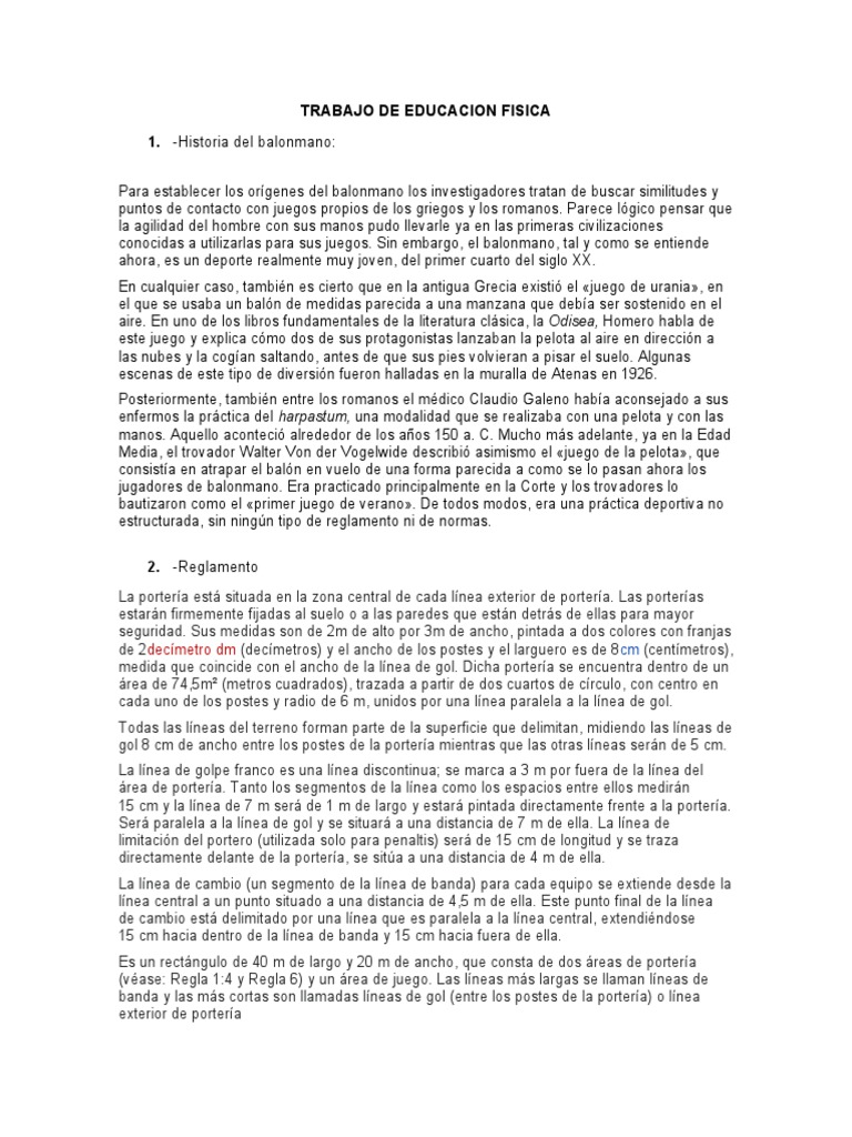 conocidas a utilizarlas para sus juegos. Sin embargo, el balonmano, tal y como se entiende