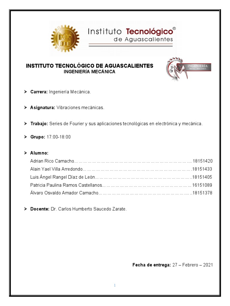 Trabajo: Series de Fourier y sus aplicaciones tecnológicas en electrónica y mecánica.