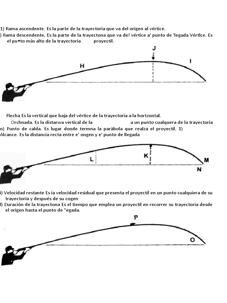 n) Punto de calda. Es lugar donde termna la parábola que realza el proyectil. 1)