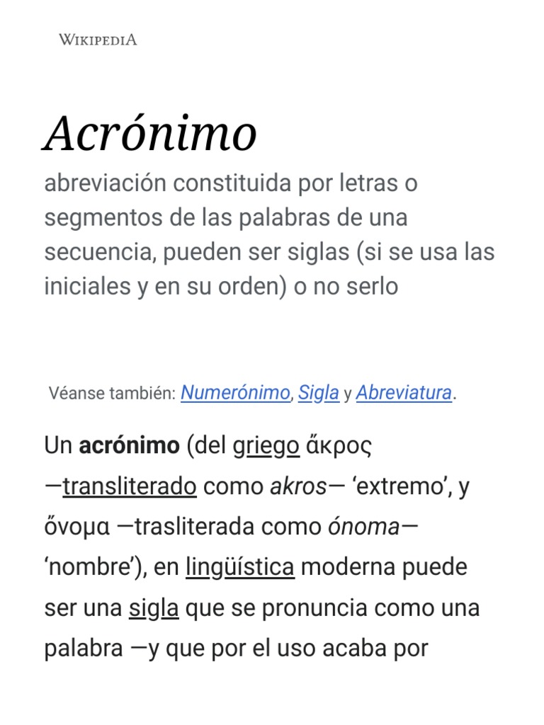 Véanse también: Numerónimo, Sigla y Abreviatura.