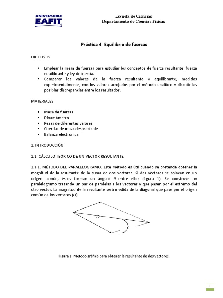 secciones de la práctica. Se debe tener experimentalmente la fuerza equilibrante del sistema
