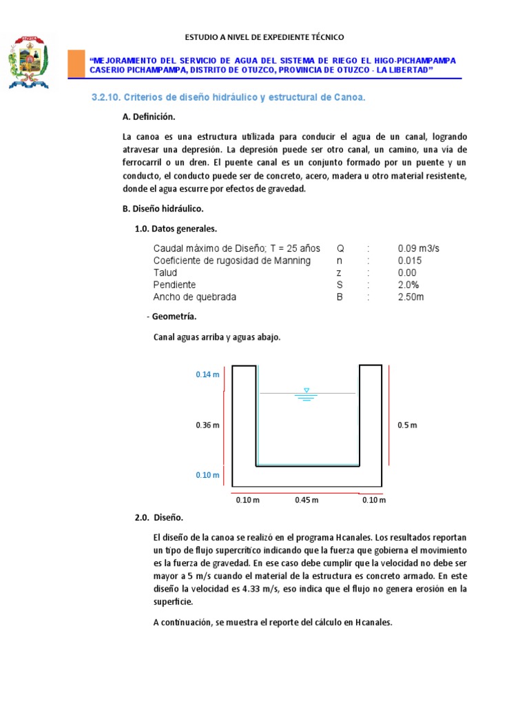 Diseño de Canoa para Riego en Otuzco