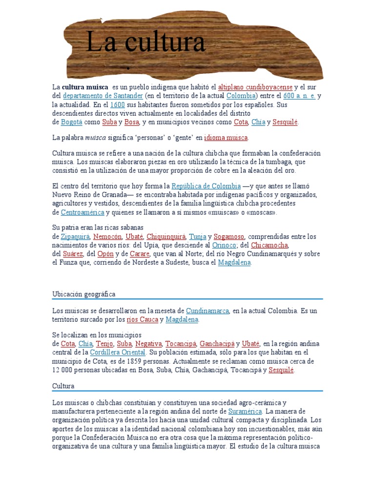 La cultura muisca es un pueblo indígena que habitó el altiplano cundiboyacense y el sur