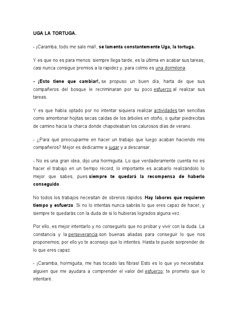 Pasaron unos días y Uga, la tortuga, se esforzaba en sus quehaceres.