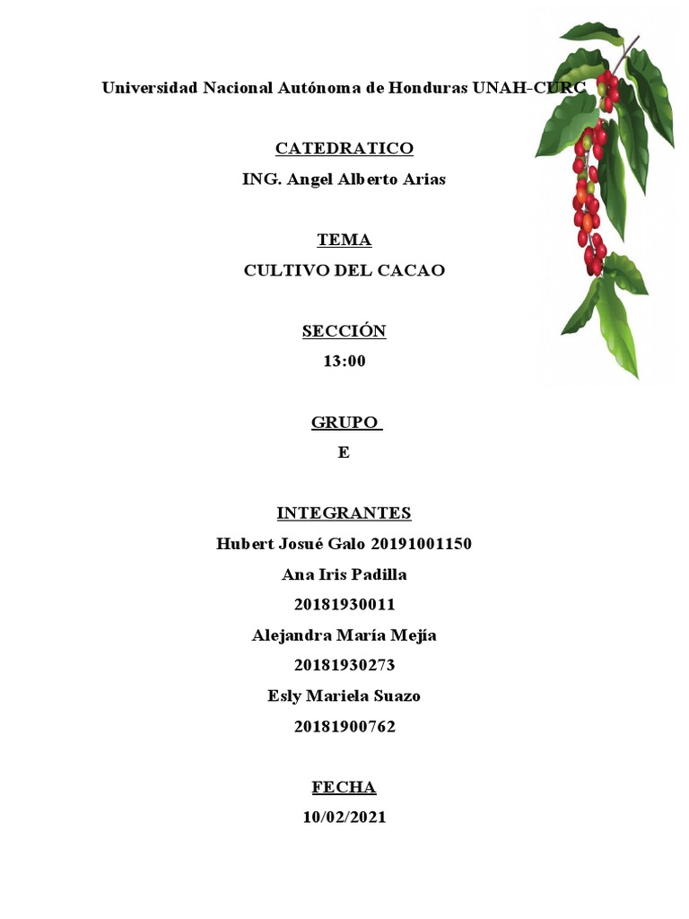 cacao L.), se cultiva en Bolivia en las áreas tropicales de los departamentos