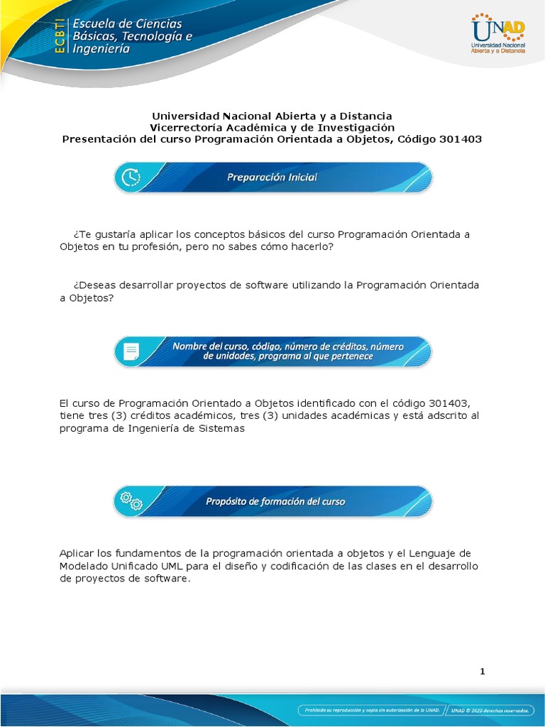 Presentación del curso Programación Orientada a Objetos, Código 301403