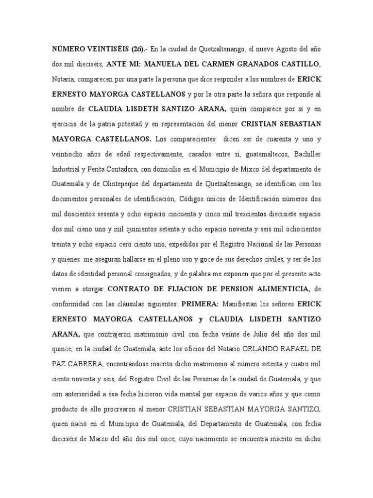 vienen a otorgar CONTRATO DE FIJACION DE PENSION ALIMENTICIA, de