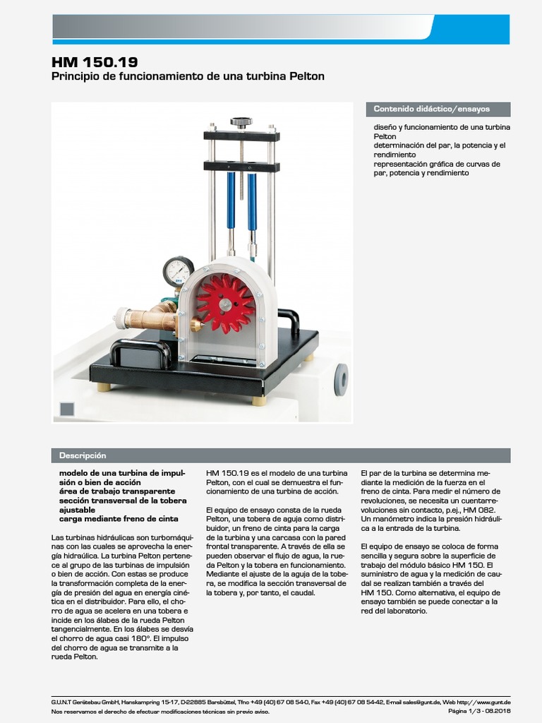 • modelo de una turbina de impul- HM 150.19 es el modelo de una turbina El par de la turbina se determina me-