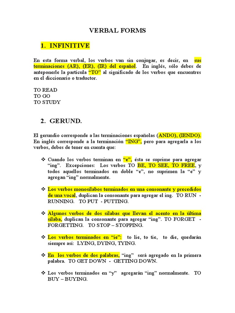 “ing”. Excepciones: Los verbos TO BE, TO SEE, TO FREE, y