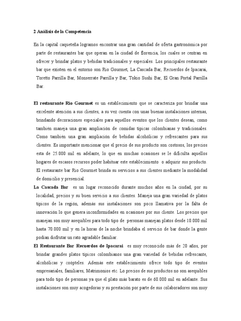 productos y servicios que ofrece los restaurantes que operan en la ciudad, para posterior