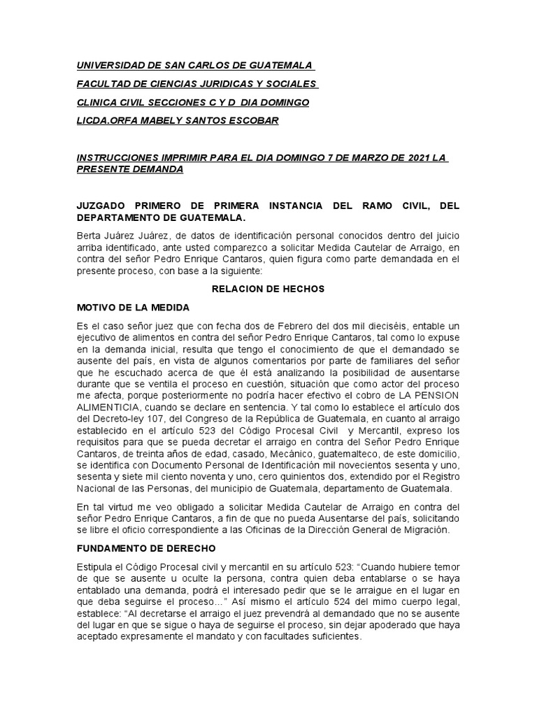 arriba identificado, ante usted comparezco a solicitar Medida Cautelar de Arraigo, en