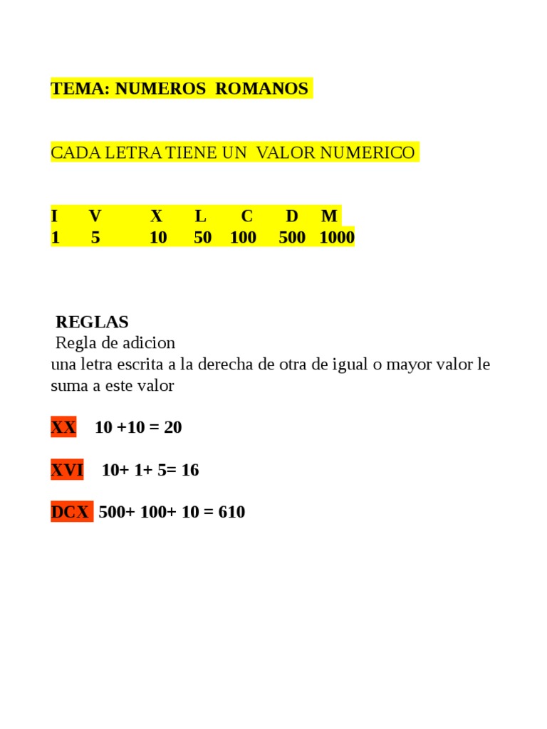 CONVIERTA LOS NUMEROS ROMANOS AL