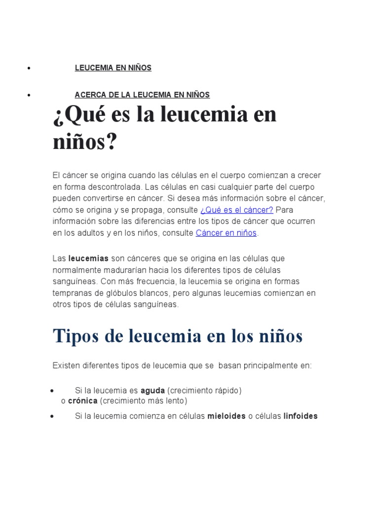 para niños con leucemia mieloide crónica [CML]). Si desea más