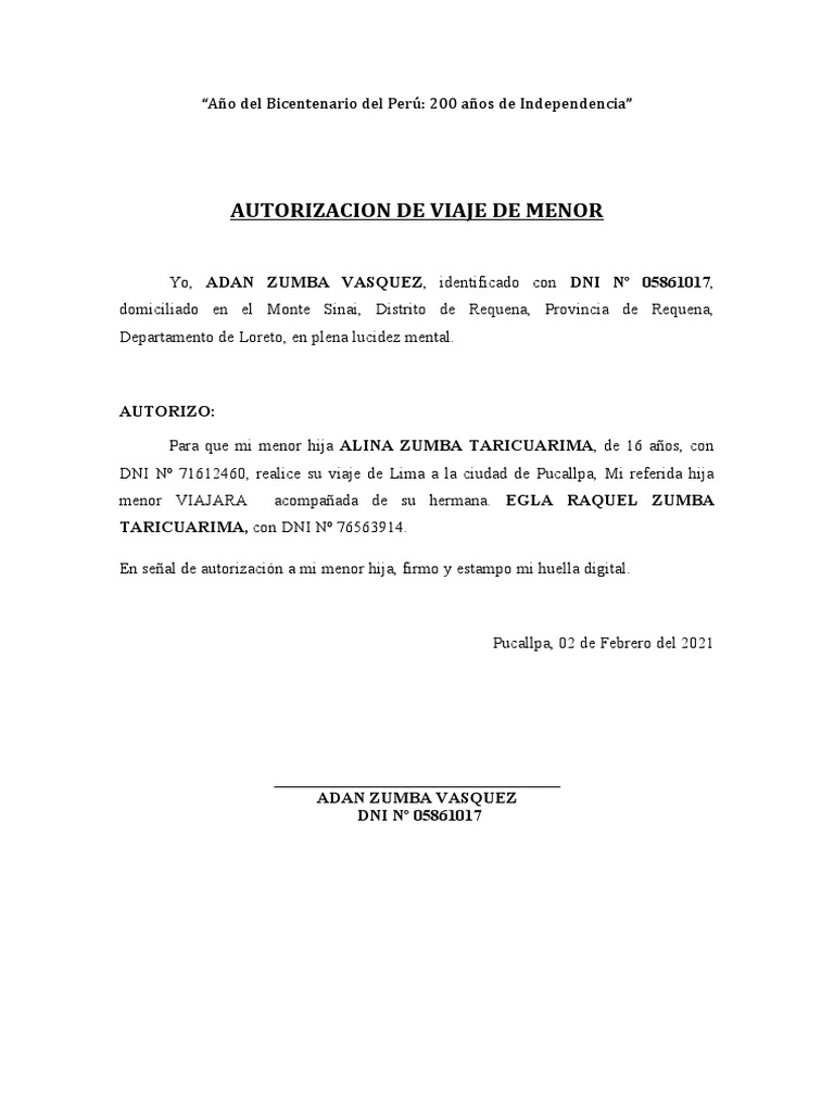AUTORIZACION DE VIAJE DE MENOR