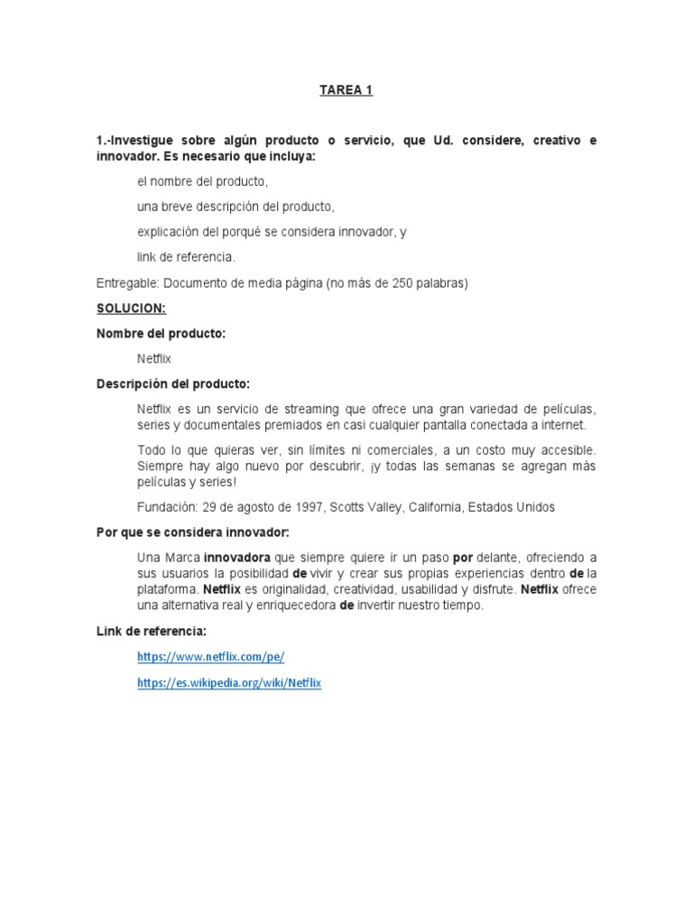 1.-Investigue sobre algún producto o servicio, que Ud. considere, creativo e