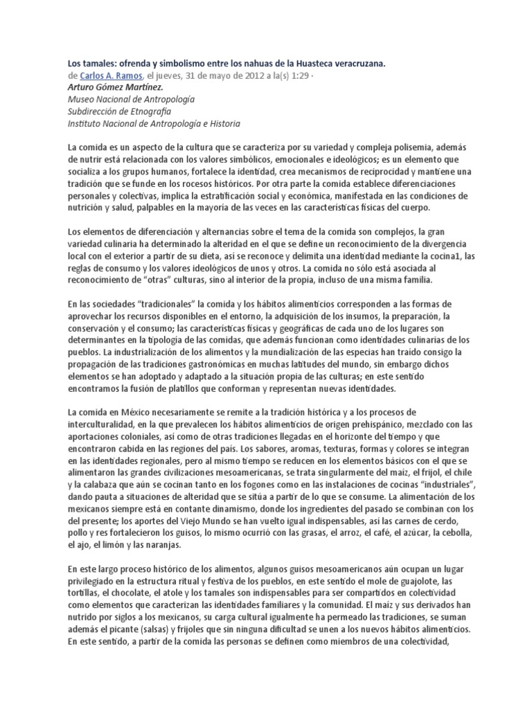 En esta ponencia se aborda una parte de la tradición culinaria vinculada a los tamales entre los nahuas