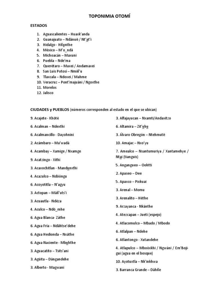 2. Acámbaro – Ma’wadá 10. Amajac – Nxo’yu
