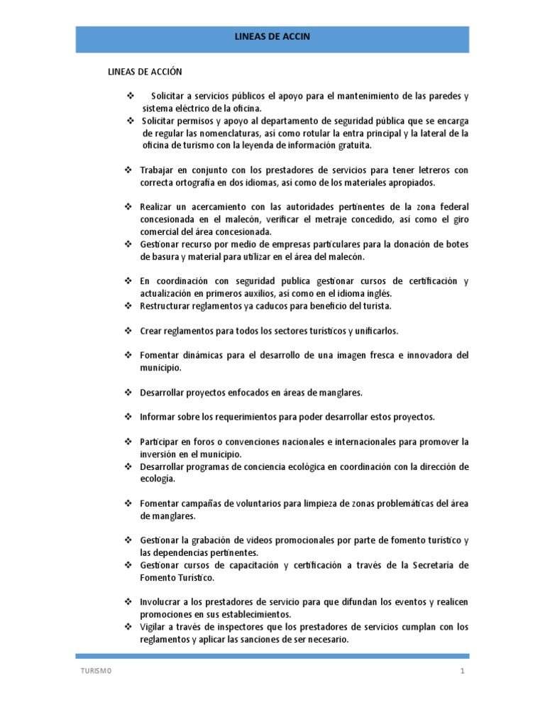 Crear reglamentos para todos los sectores turísticos y unificarlos.